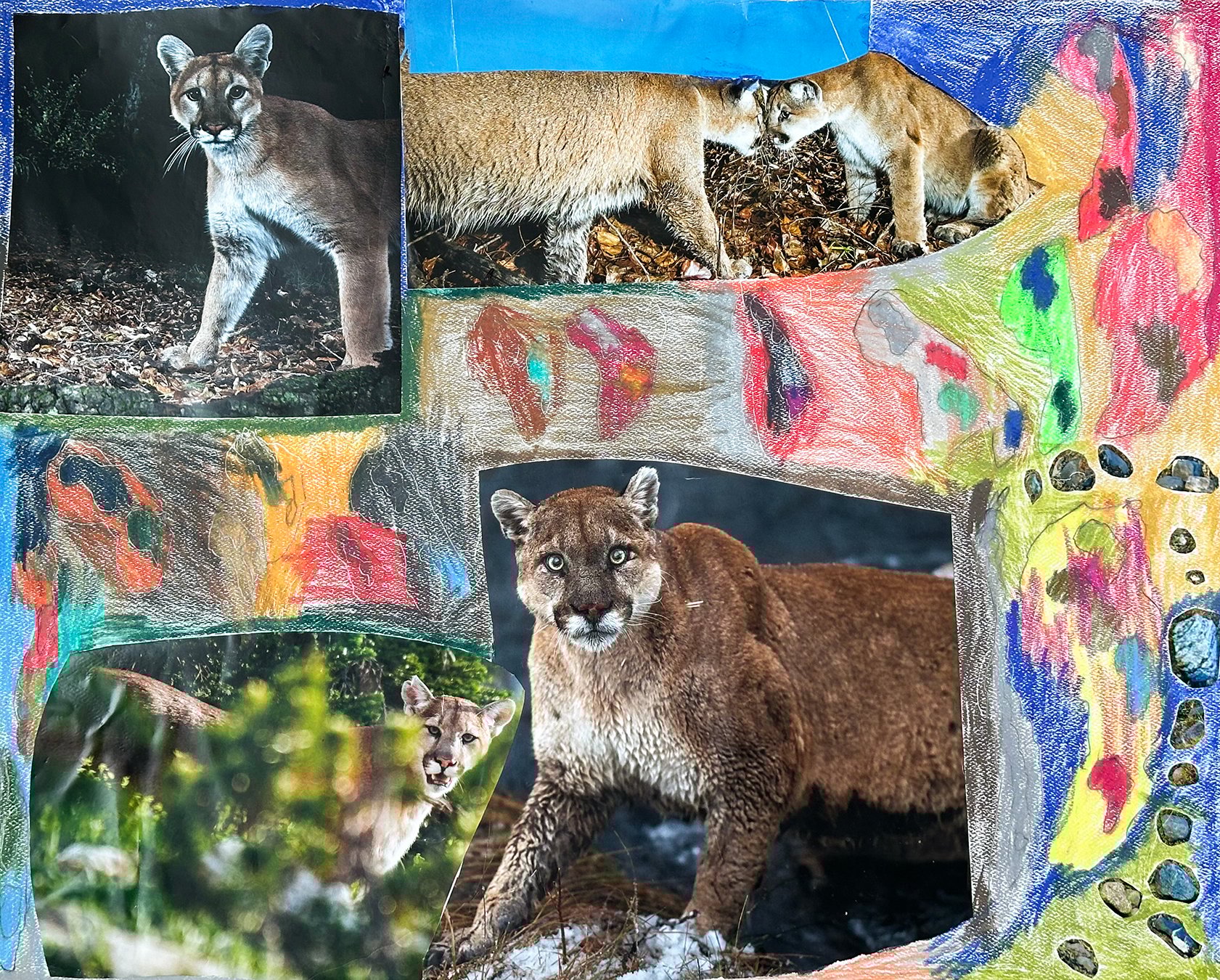 Cougars, 2024. Mixed media on paper, 16 x 20 inches